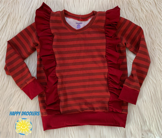 Red Stripes Ruffled Top